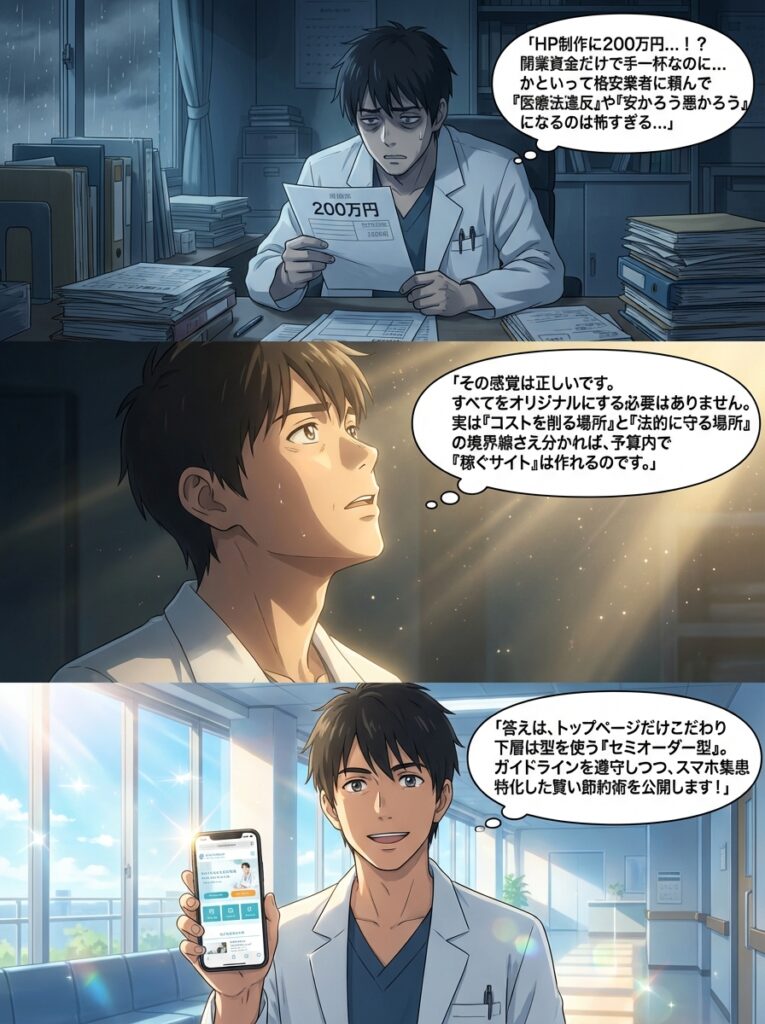 「ホームページに200万円もかける必要があるのか?」その疑問は正解です。本記事では、賢い開業医が実践している、コストと成果を両立させるための「正しい節約術」を公開します。 -