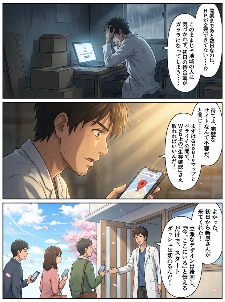 クリニック開業にホームページ制作が間に合わない!集患を諦めないための即効対策と3ステップの挽回策