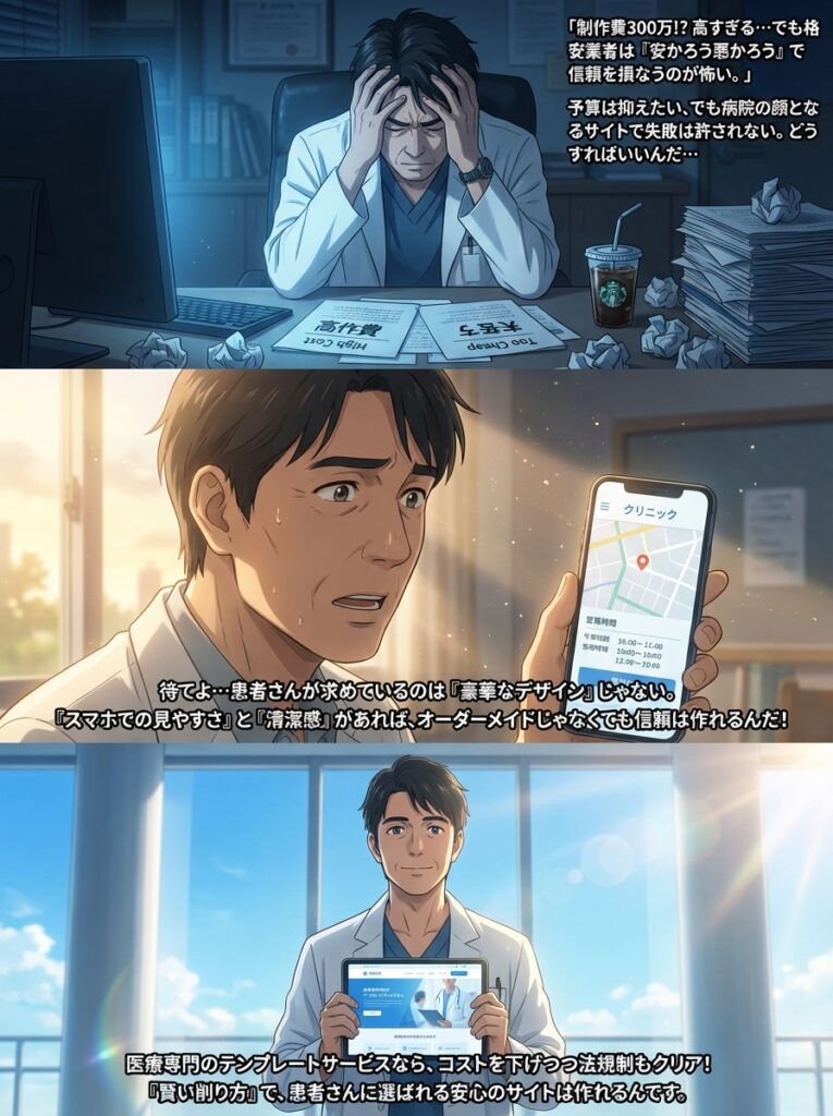 新規開業やリニューアルを検討している個人クリニックの院長様へ。限られた予算でも医療広告ガイドラインを遵守し、集患できるホームページ制作の選び方を解説。ITに詳しくない方でも安心できるサポート体制の重要性も。 -