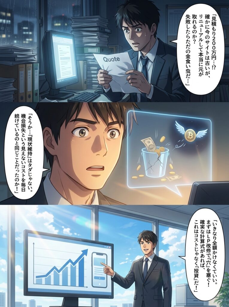 「200万円のリニューアル費用は高いのか、それとも安いのか?」この問いに即答できないなら、まだリニューアルを進めるべきではありません。本記事では、曖昧になりがちなウェブサイトの費用対効果を数値化し、確実に『利益を生む投資』に変えるための具体的な戦略を解説します。 -